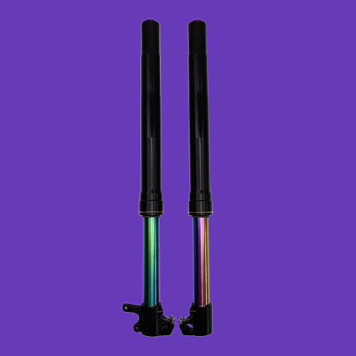 Precision meets style. The ETM RTR ‘Oil Slick’ Forks deliver smooth performance and bold looks with a stunning iridescent finish. Built for strength, control, and head-turning detail on every ride.